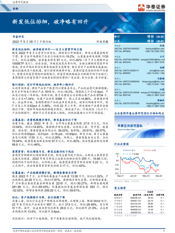 【华泰证券】【20220909】金融行业月报:新发低位徘徊,破净略有回升-22页