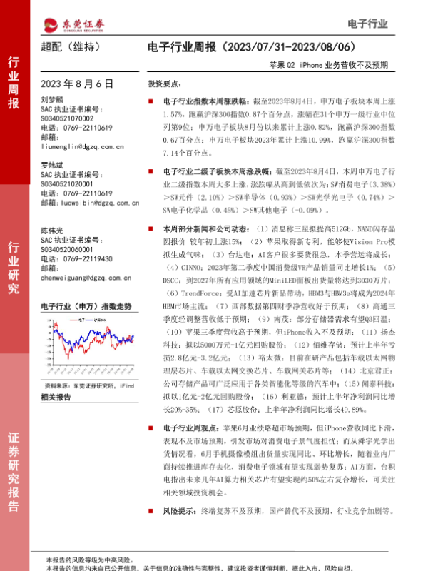 【东莞证券】【20230806】20230806-东莞证券-电子行业周报:苹果Q2 iPhone业务营收不及预期-12页
