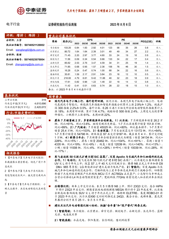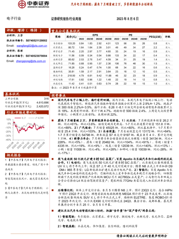 【中泰证券】【20230806】汽车电子周跟踪:蔚来7月销量破2万,多家新能源车企创新高-16页