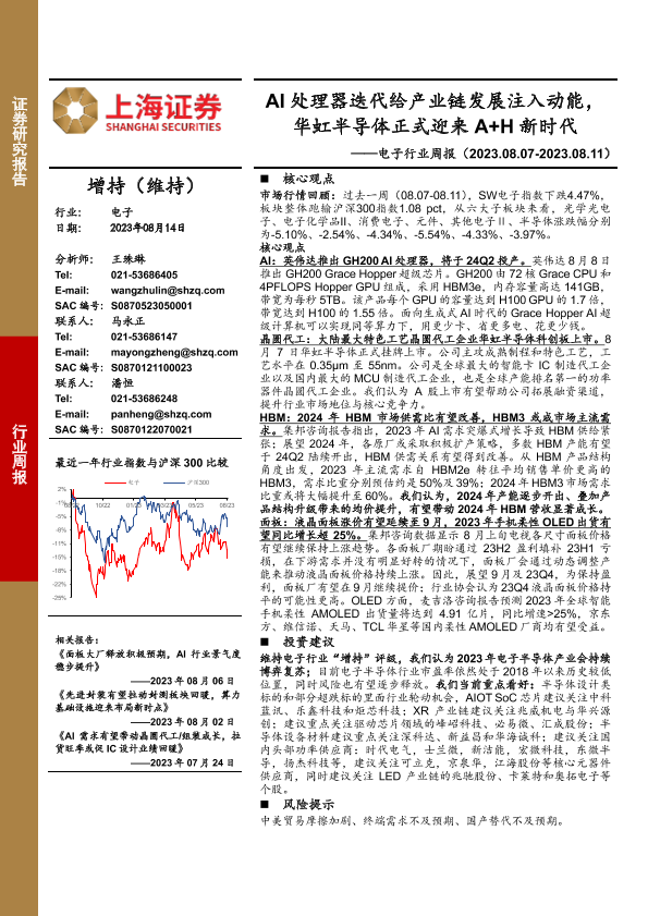 AI处理器 HBM 华虹半导体 电子行业 面板