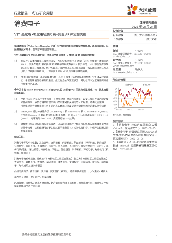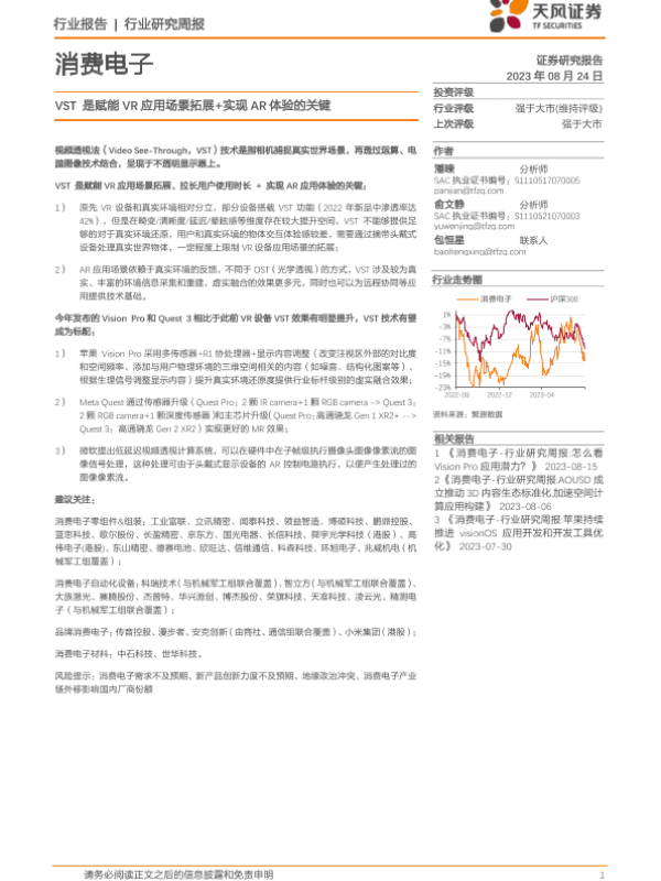 【天风证券】【20230824】消费电子行业研究周报:VST是赋能VR应用场景拓展+实现AR体验的关键-14页
