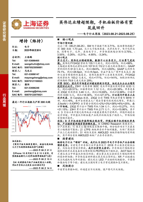 【上海证券】【20230828】20230828-上海证券-电子行业周报:英伟达业绩超预期,手机面板价格有望筑底回升-13页