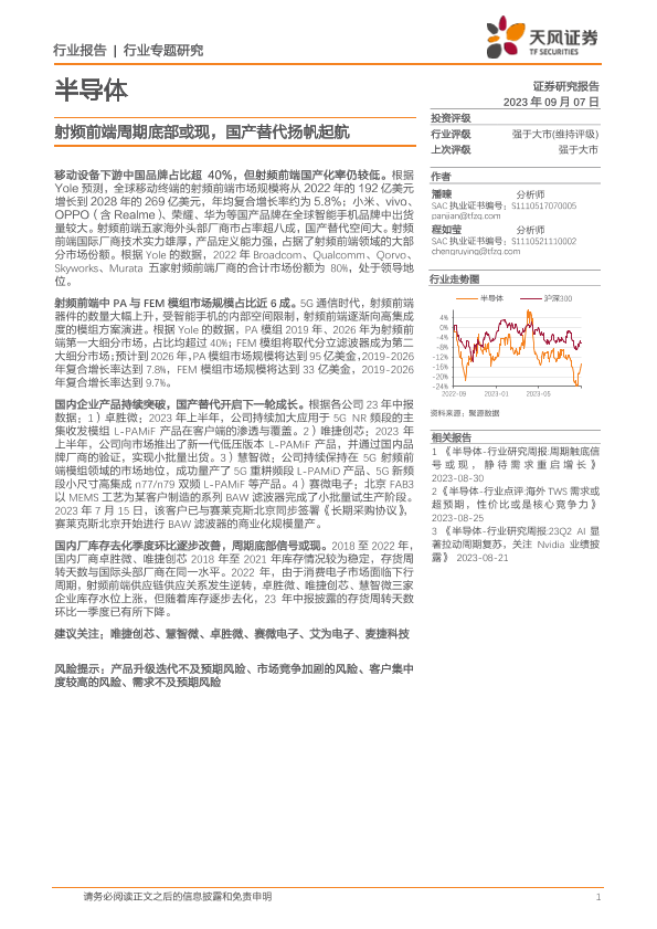 【天风证券】【20230907】20230907-天风证券-半导体行业专题研究:射频前端周期底部或现,国产替代扬帆起航-11页