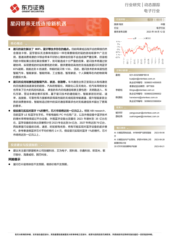 【东方证券】【20230912】20230912-东方证券-电子行业动态跟踪:星闪带来无线连接新机遇-10页