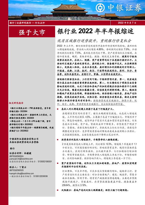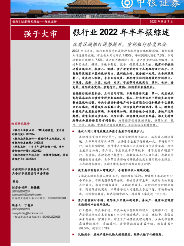 【中银证券】【20220907】银行业2022年半年报综述:优质区域银行逆势提升,重视银行修复机会-30页