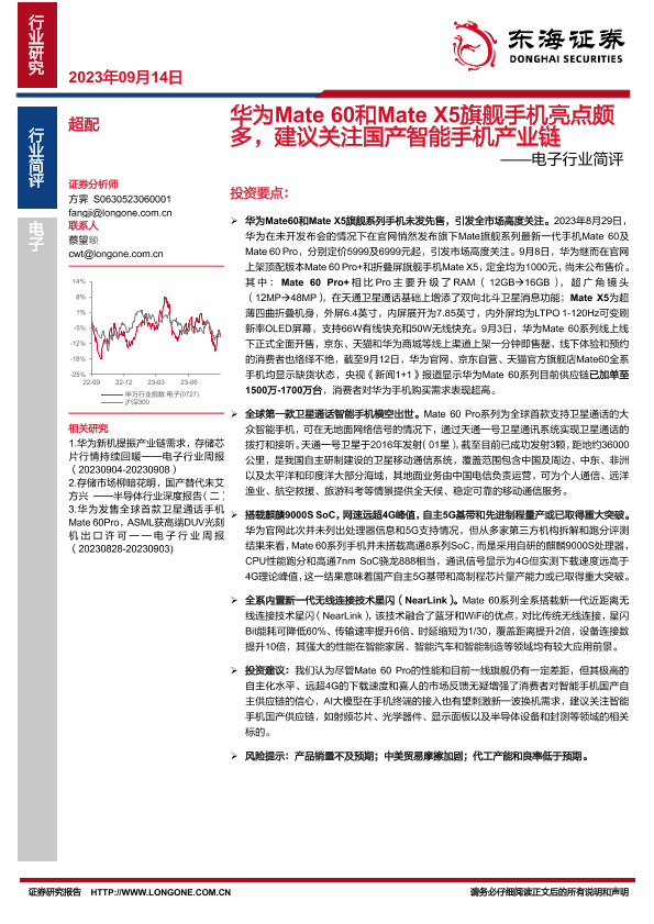 【东海证券】【20230914】华为Mate 60和Mate X5旗舰手机亮点颇多,建议关注国产智能手机产业链-10页