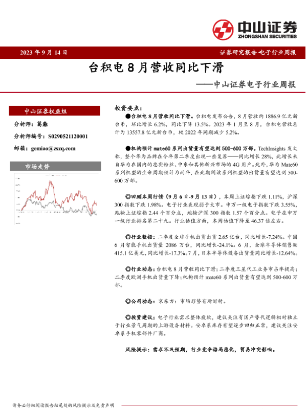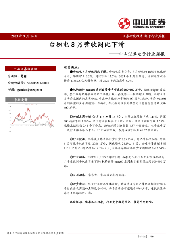 【中山证券】【20230914】20230914-中山证券-电子行业周报:台积电8月营收同比下滑-10页