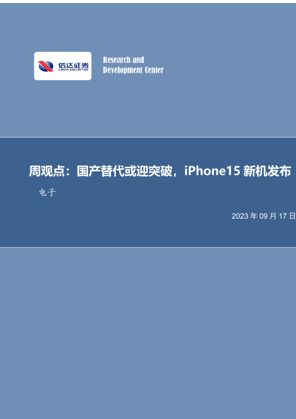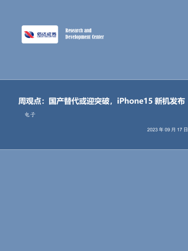 【信达证券】【20230917】20230917-信达证券-电子周观点:国产替代或迎突破,iPhone15新机发布-15页