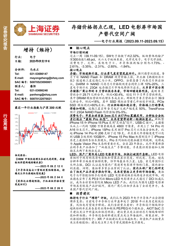 【上海证券】【20230919】20230919-上海证券-电子行业周报:存储价格拐点已现,LED电影屏市场国产替代空间广阔-13页