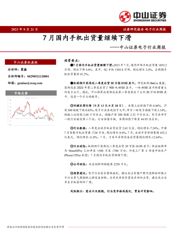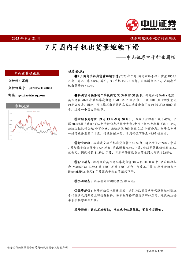 【中山证券】【20230921】20230921-中山证券-电子行业周报:7月国内手机出货量继续下滑-10页