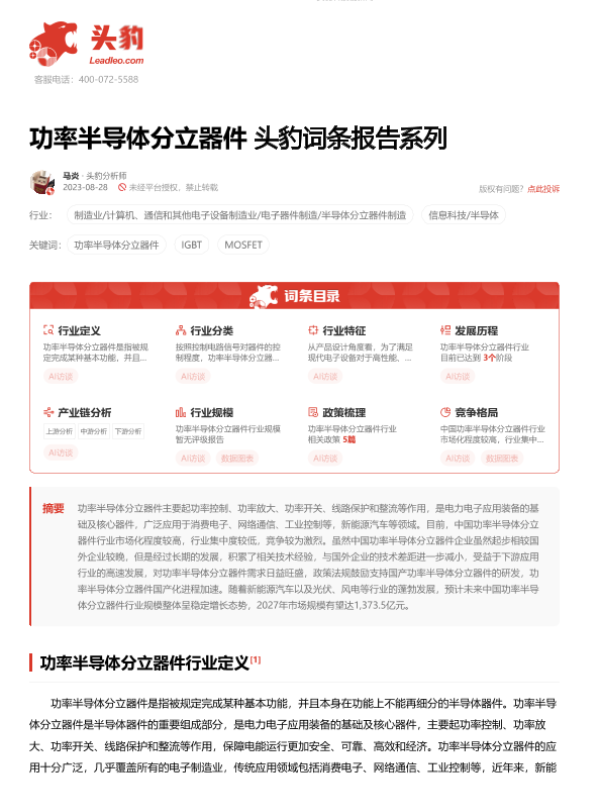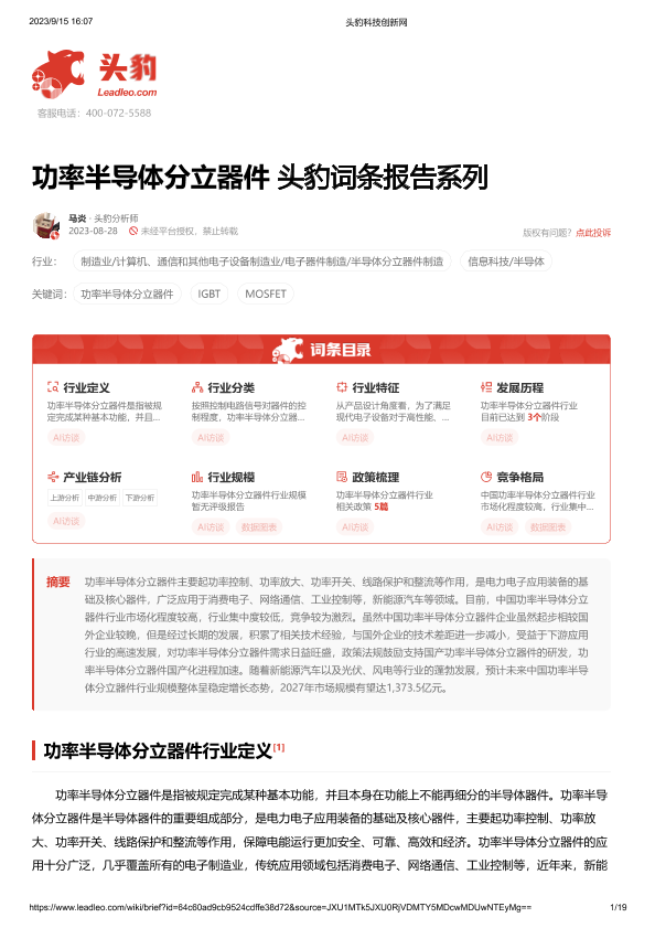 【头豹研究院】【20231023】功率半导体分立器件 头豹词条报告系列-19页