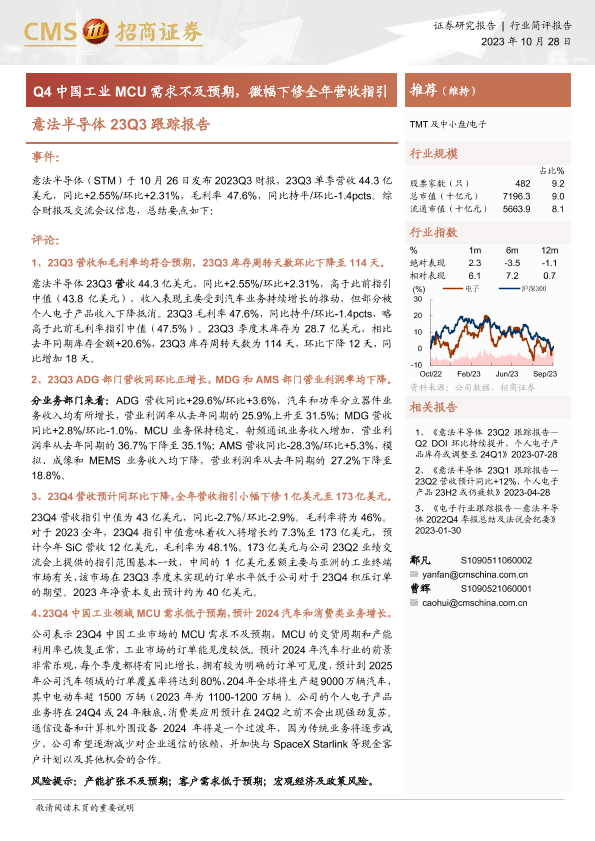 【海通证券】【20231028】20231028-招商证券-意法半导体23Q3跟踪报告:Q4中国工业MCU需求不及预期,微幅下修全年营收指引-11页