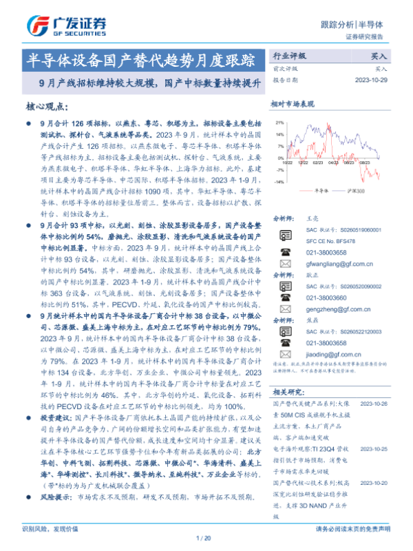 【广发证券】【20231029】半导体设备国产替代趋势月度跟踪:9月产线招标维持较大规模,国产中标数量持续提升-20页