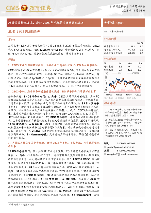 【海通证券】【20231101】三星23Q3跟踪报告:存储芯片触底复苏,看好2024年手机等多终端需求改善-17页