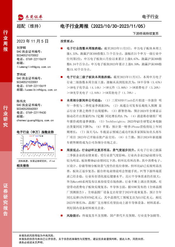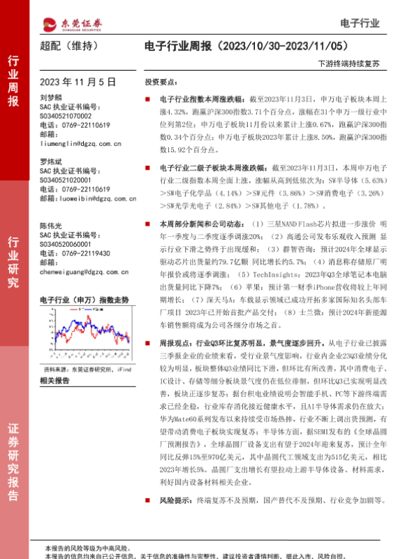 【东莞证券】【20231105】20231105-东莞证券-电子行业周报:下游终端持续复苏-10页