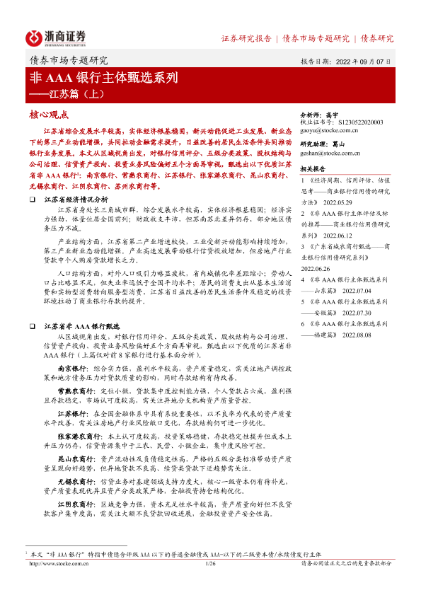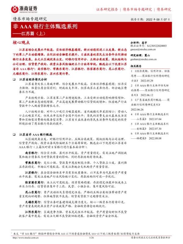 【浙商证券】【20220907】非AAA银行主体甄选系列:江苏篇(上)-26页