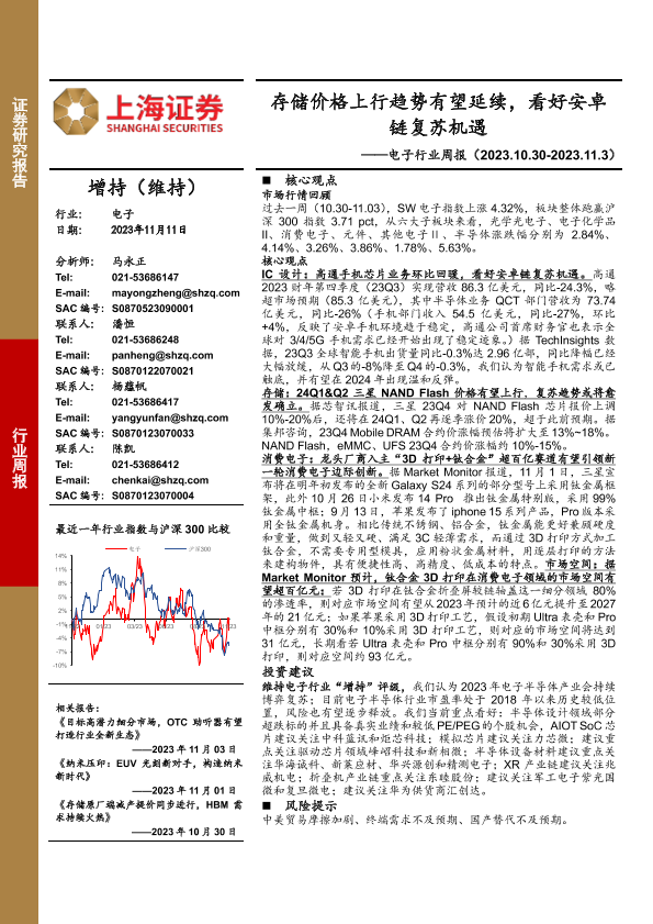 【上海证券】【20231111】电子行业周报:存储价格上行趋势有望延续,看好安卓链复苏机遇-12页