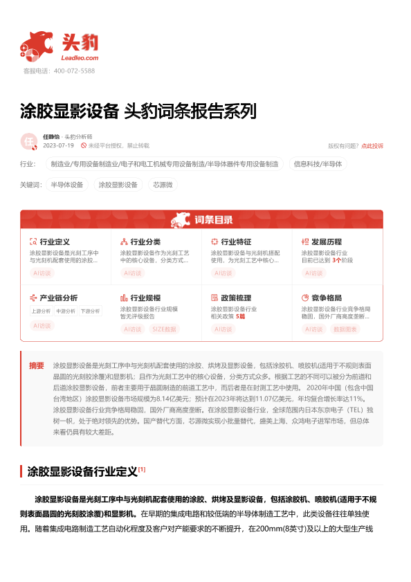 【头豹研究院】【2023】涂胶显影设备 头豹词条报告系列-17页