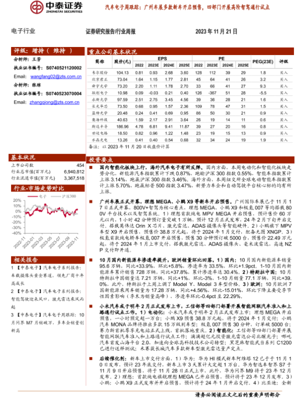 【中泰证券】【20231121】汽车电子周跟踪:广州车展多款新车开启预售,四部门开展高阶智驾通行试点-16页