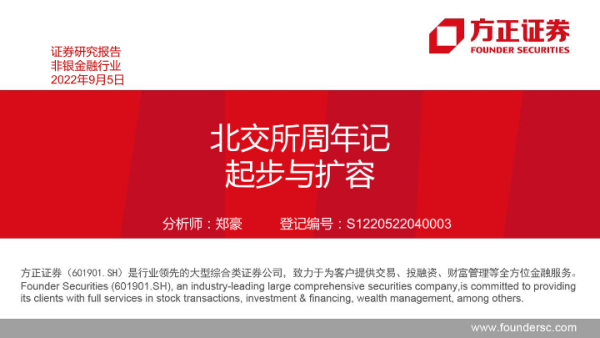 【方正证券】【20220905】非银金融行业:北交所周年记,起步与扩容-28页