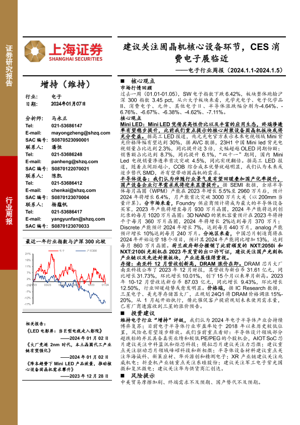 【上海证券】【20240107】20240107-上海证券-电子行业周报:建议关注固晶机核心设备环节,CES消费电子展临近-10页
