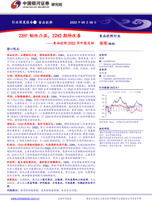 【银河证券】【20220908】食品饮料行业2022年中报总结:22H1韧性凸显,22H2期待改善-19页