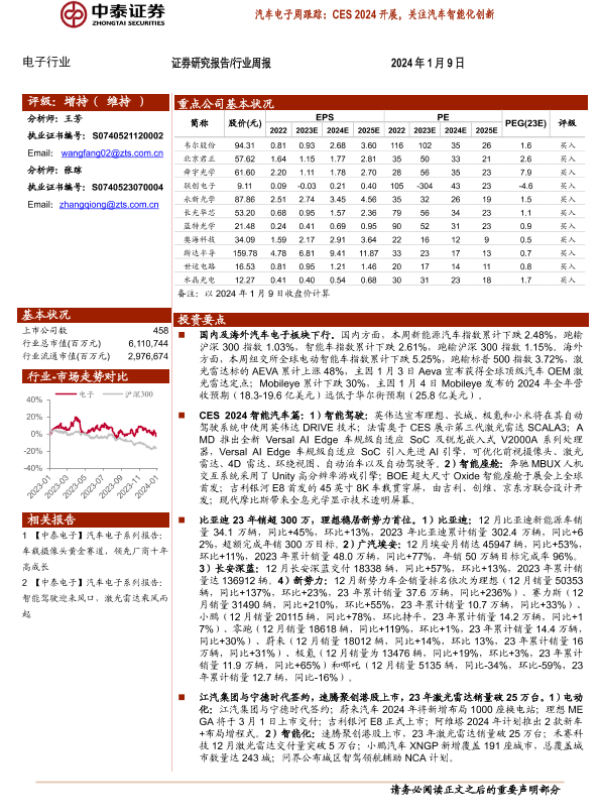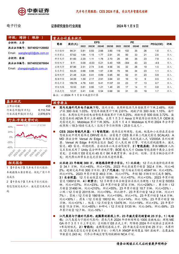 【中泰证券】【20240109】20240109-中泰证券-汽车电子行业周跟踪:CES 2024开展,关注汽车智能化创新-17页