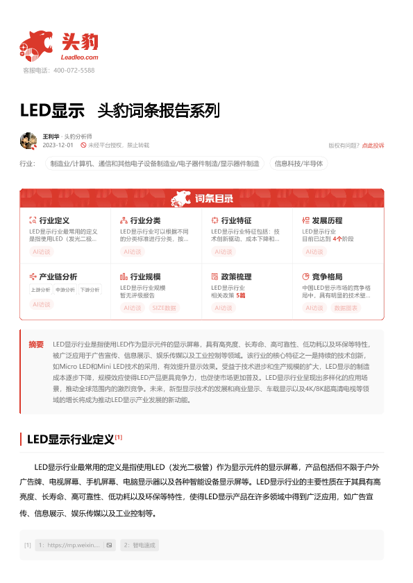 【头豹研究院】【20240117】20240117-头豹研究院-LED显示 头豹词条报告系列-18页