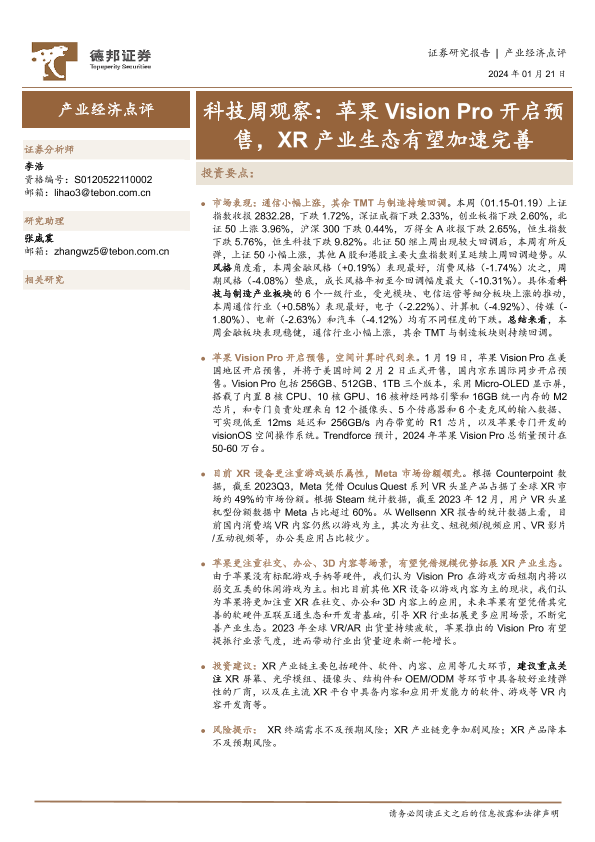 【德邦证券】【20240121】科技周观察:苹果Vision Pro开启预售,XR产业生态有望加速完善-13页