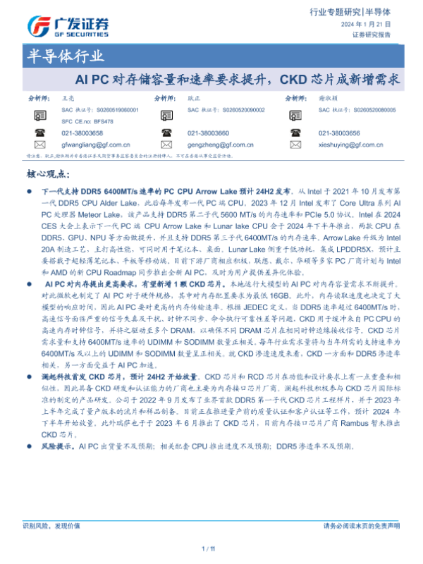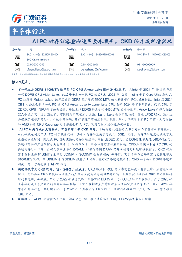 【广发证券】【20240121】AI PC对存储容量和速率要求提升,CKD芯片成新增需求-11页