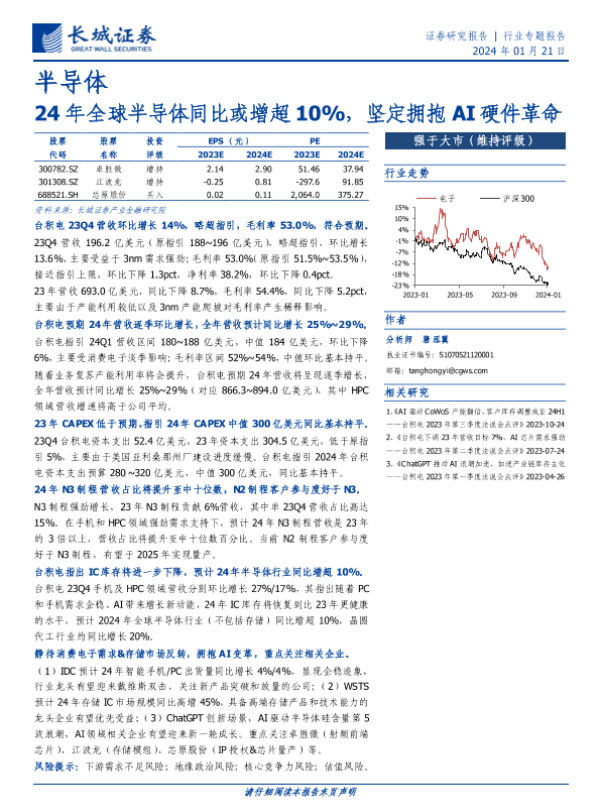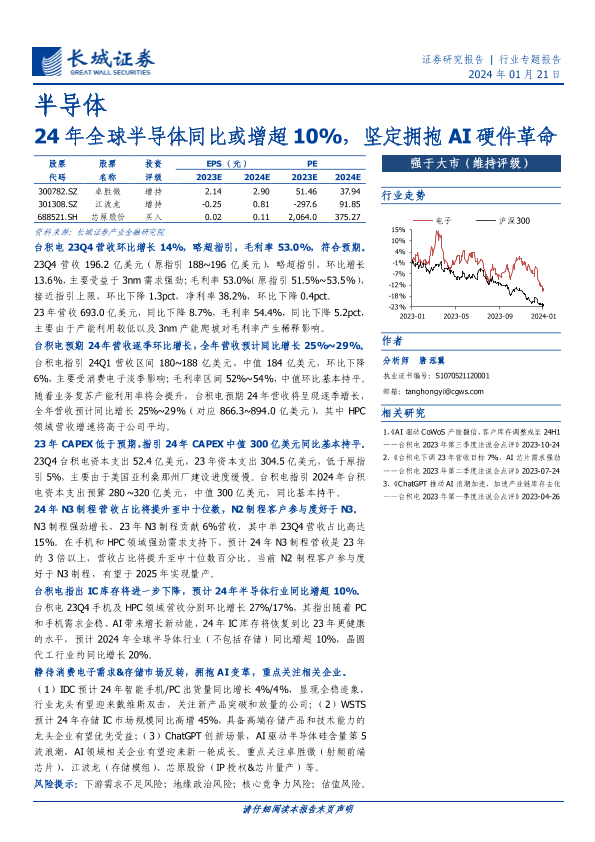 【长城证券】【20240121】24年全球半导体同比或增超10%,坚定拥抱AI硬件革命-16页