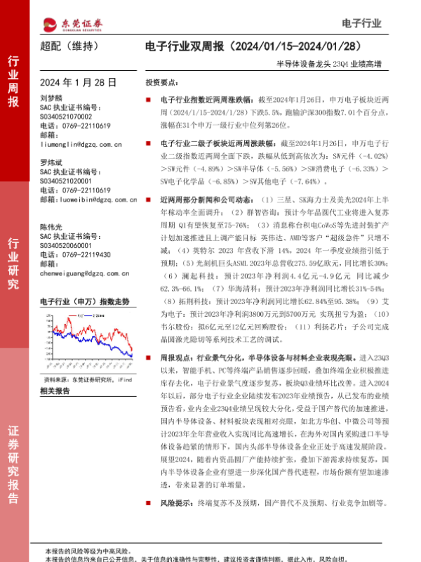 【东莞证券】【20240128】电子行业双周报:半导体设备龙头23Q4业绩高增-13页