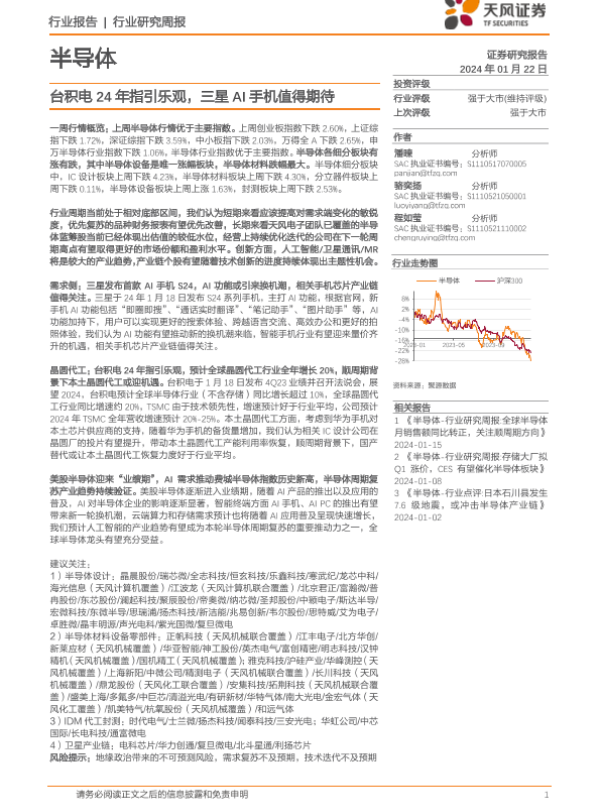 【天风证券】【20240122】20240122-天风证券-半导体行业研究周报:台积电24年指引乐观,三星AI手机值得期待-37页