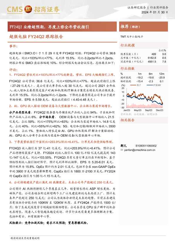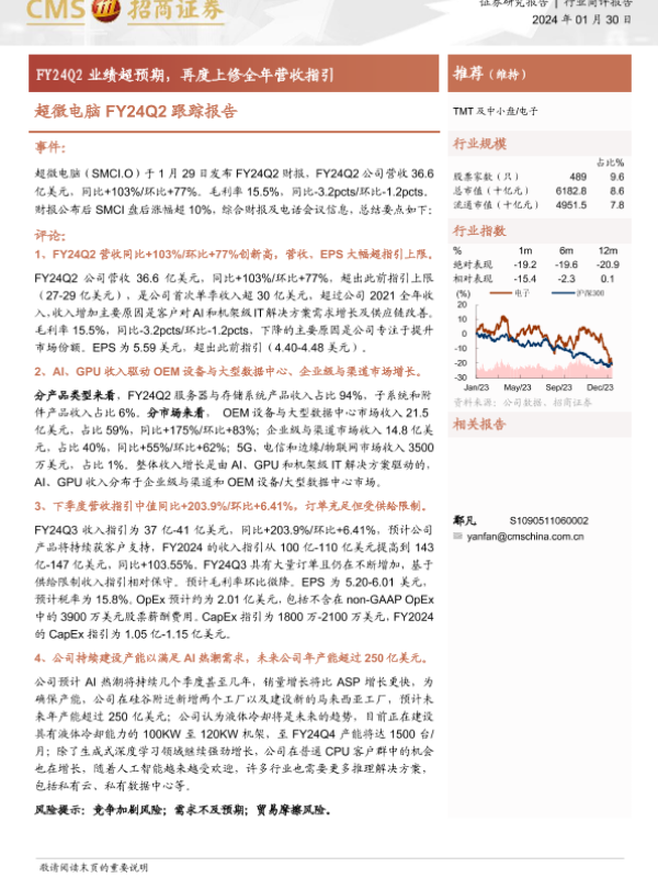 【海通证券】【20240130】超微电脑FY24Q2跟踪报告-FY24Q2业绩超预期,再度上修全年营收指引-10页