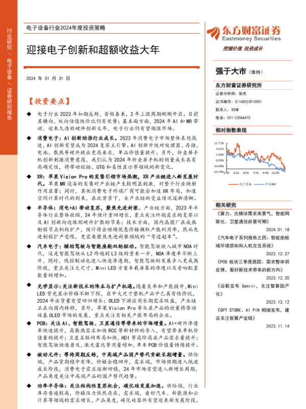 【东方财富证券】【20240131】电子设备行业2024年度投资策略:迎接电子创新和超额收益大年-48页