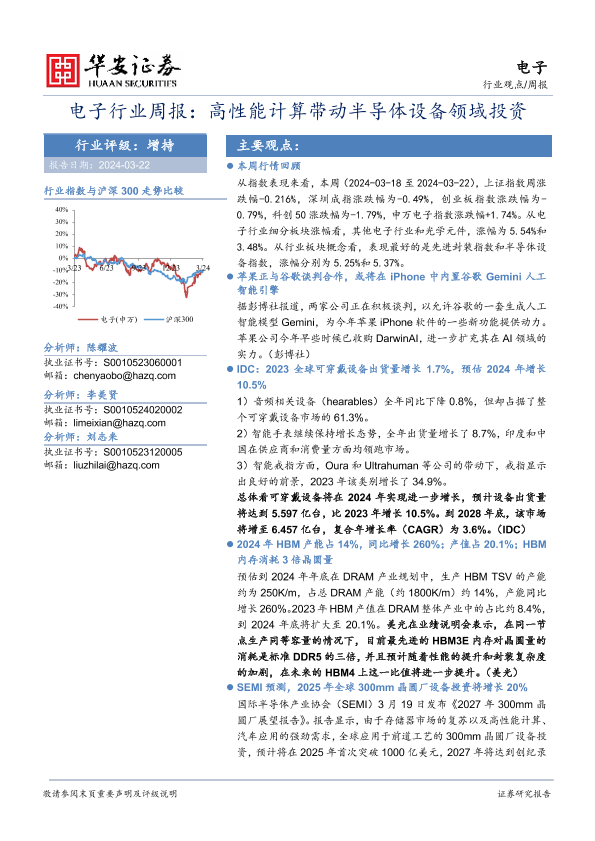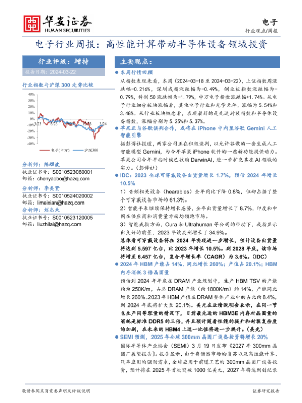 【华安证券】【20240322】电子行业周报:高性能计算带动半导体设备领域投资-23页