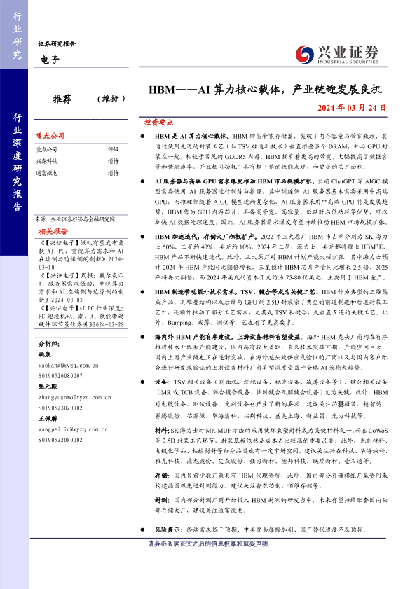 【兴业证券】【20240324】HBM——AI算力核心载体,产业链迎发展良机-39页