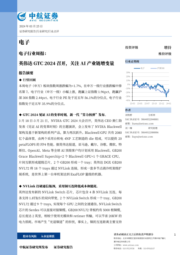 【中航证券】【20240325】20240325-中航证券-电子行业周报:英伟达GTC 2024召开,关注AI产业链增变量-16页