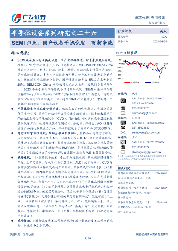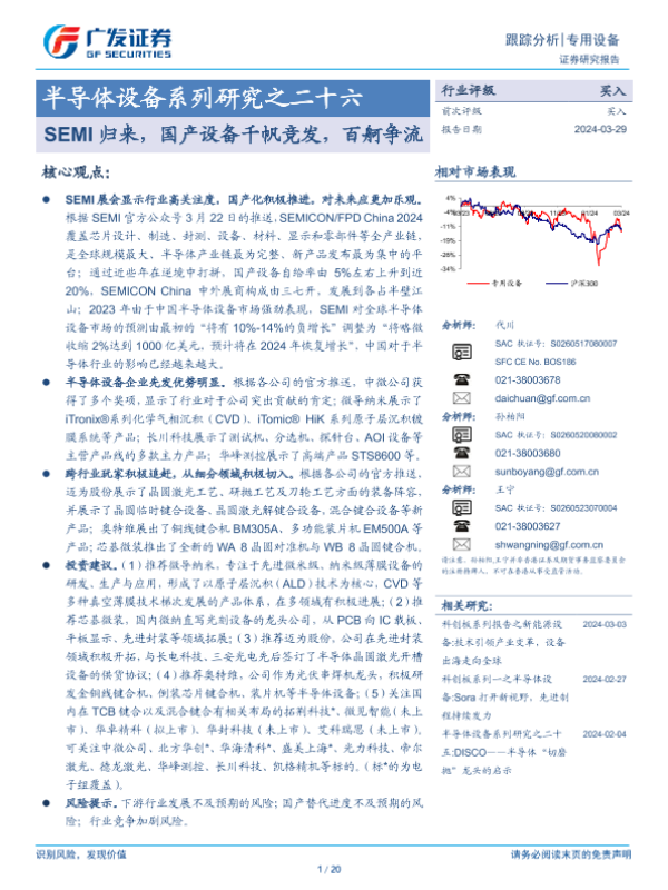 【广发证券】【20240329】20240329-广发证券-半导体设备系列研究之二十六:SEMI归来,国产设备千帆竞发,百舸争流-20页