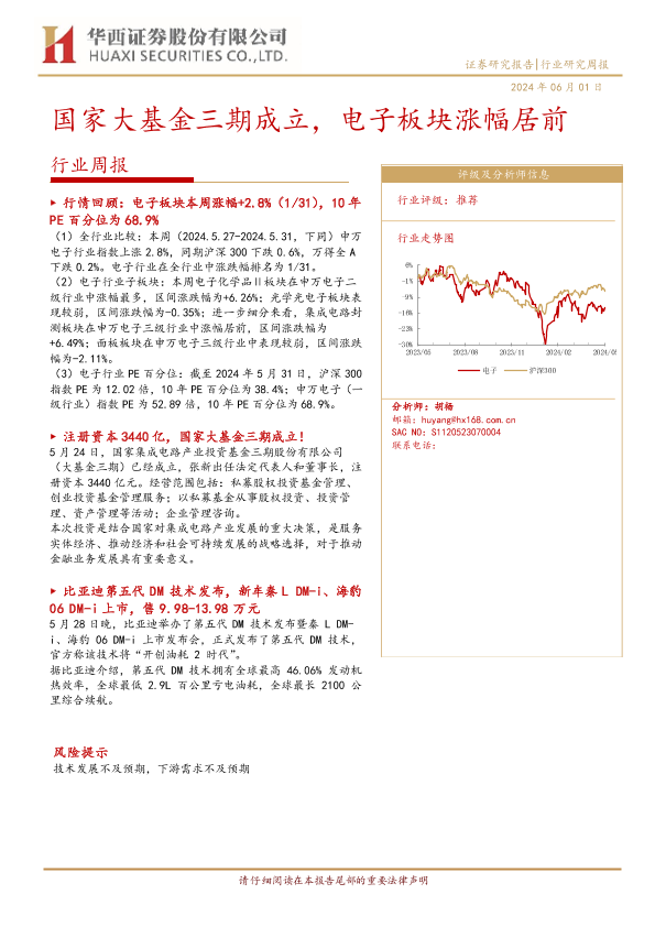 【华西证券】【20240601】20240601-华西证券-电子行业周报:国家大基金三期成立,电子板块涨幅居前-15页
