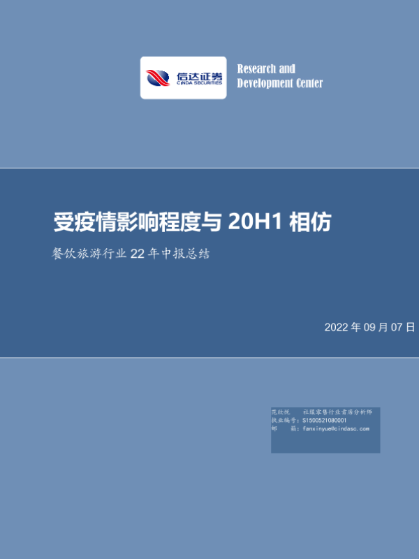 【信达证券】【20220907】餐饮旅游行业22年中报总结:受疫情影响程度与20H1相仿-25页
