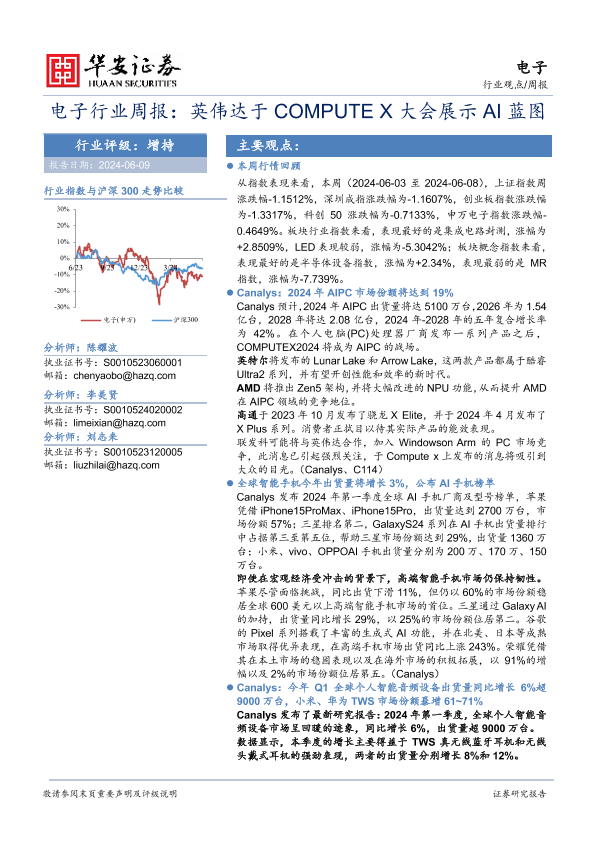 【华安证券】【20240609】电子行业周报:英伟达于COMPUTE X大会展示AI蓝图-20页