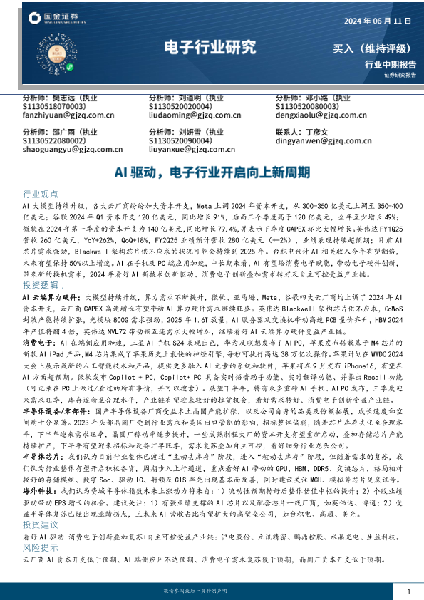 【国金证券】【20240611】电子行业研究:AI驱动,电子行业开启向上新周期-58页