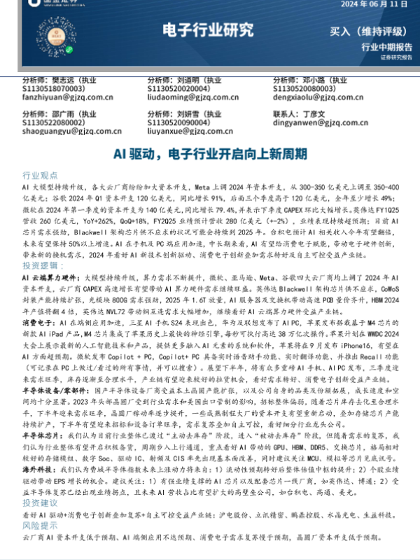 AI驱动 半导体 消费电子 电子行业 资本开支