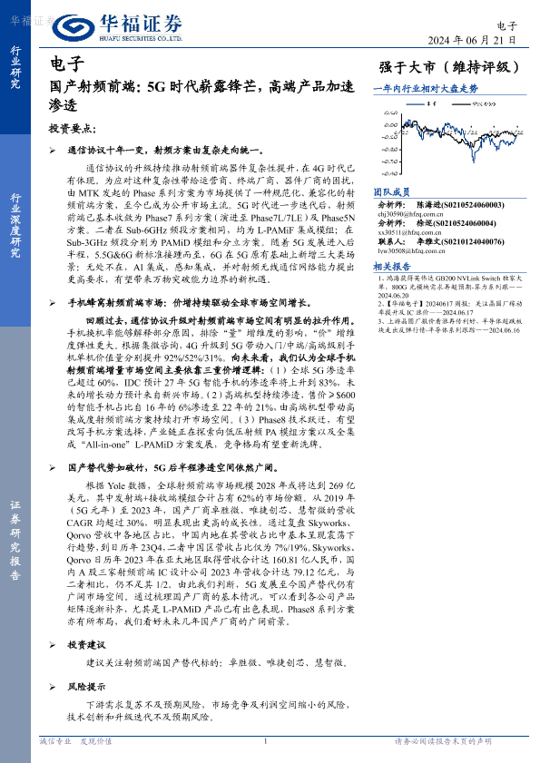 【华福证券】【20240621】电子国产射频前端:5G时代崭露锋芒,高端产品加速渗透-24页