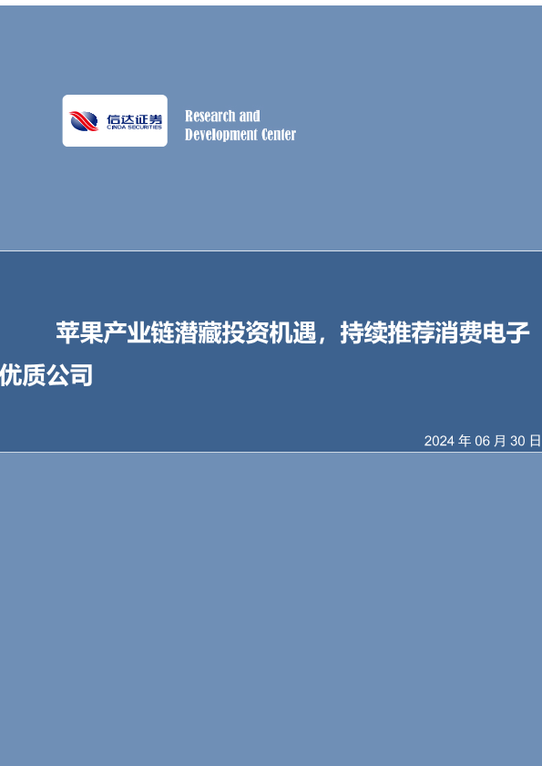 【信达证券】【20240630】电子行业周报:苹果产业链潜藏投资机遇,持续推荐消费电子优质公司-12页