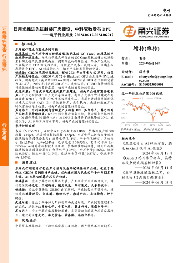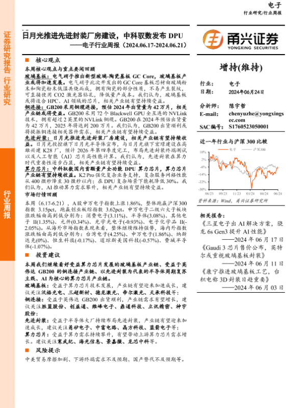 【甬兴证券】【20240624】20240624-甬兴证券-电子行业周报:日月光推进先进封装厂房建设,中科驭数发布DPU-14页