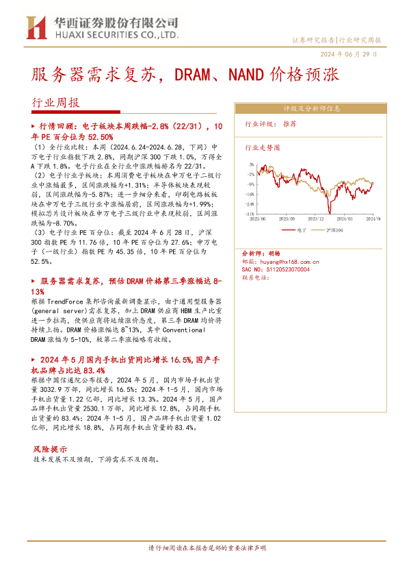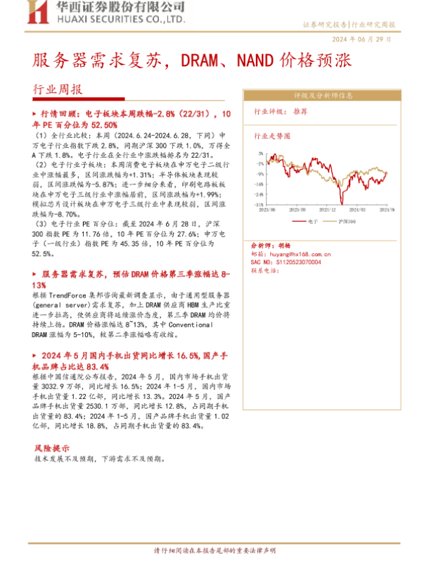【华西证券】【20240629】电子行业周报:服务器需求复苏,DRAM、NAND价格预涨-18页