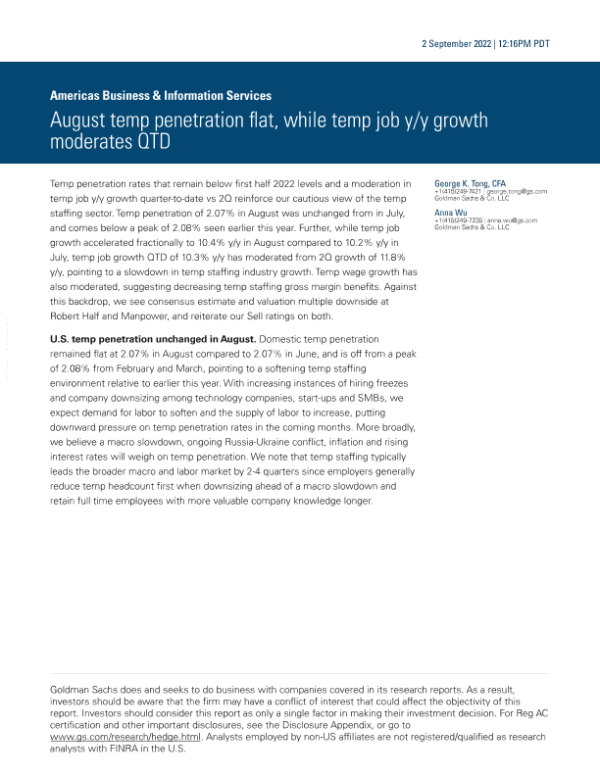 【Goldman Sachs】【20220902】August temp penetration flat, while temp job y_y growth moderates QTD-23页