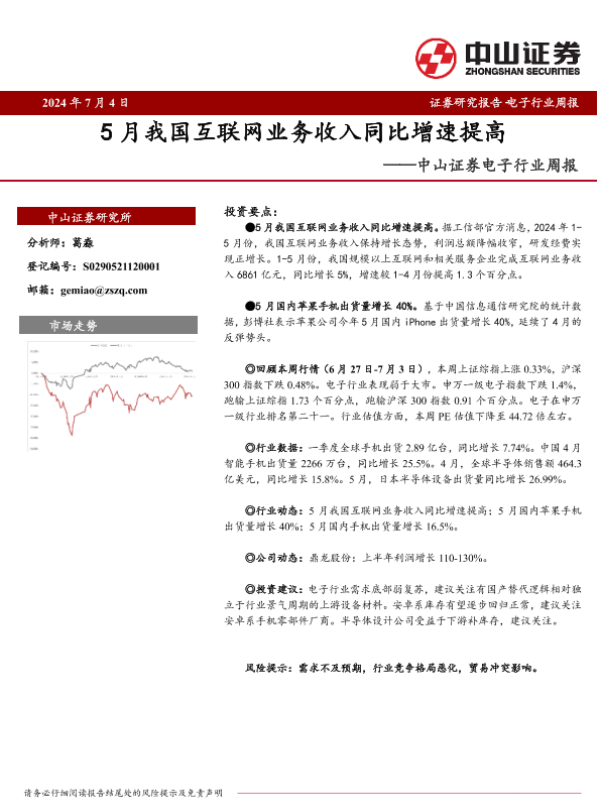 【中山证券】【20240704】20240704-中山证券-电子行业周报:5月我国互联网业务收入同比增速提高-10页